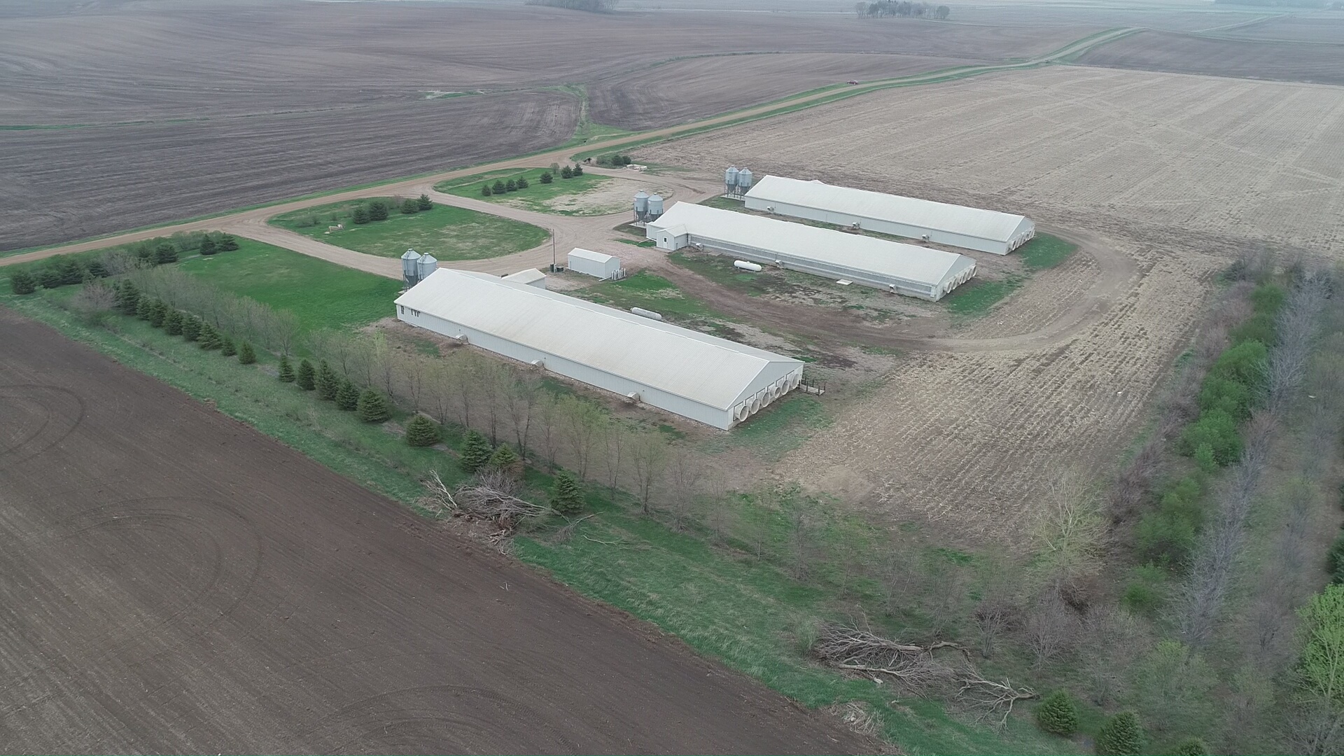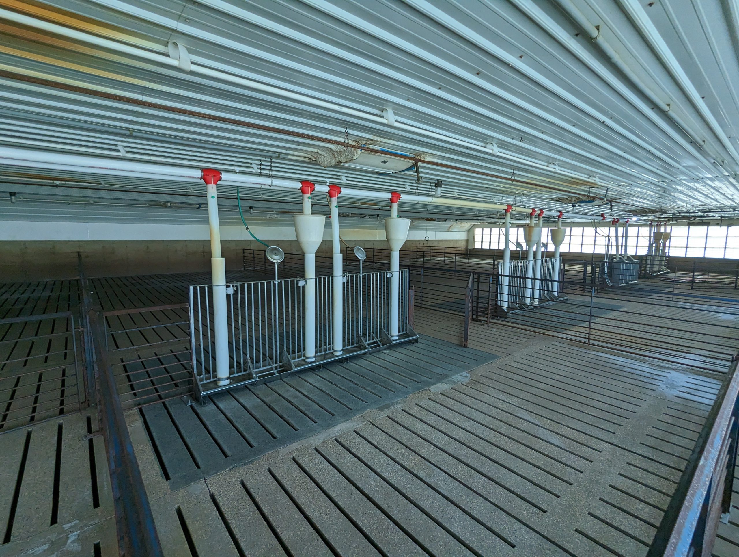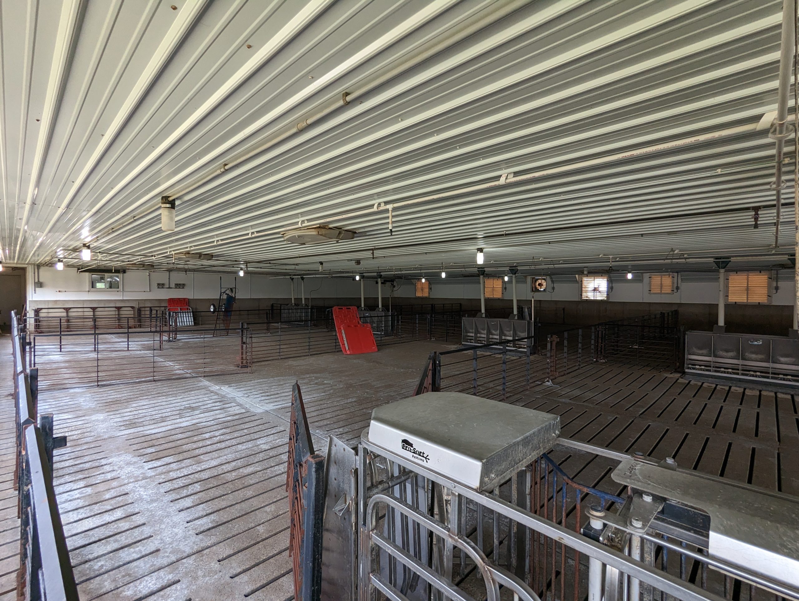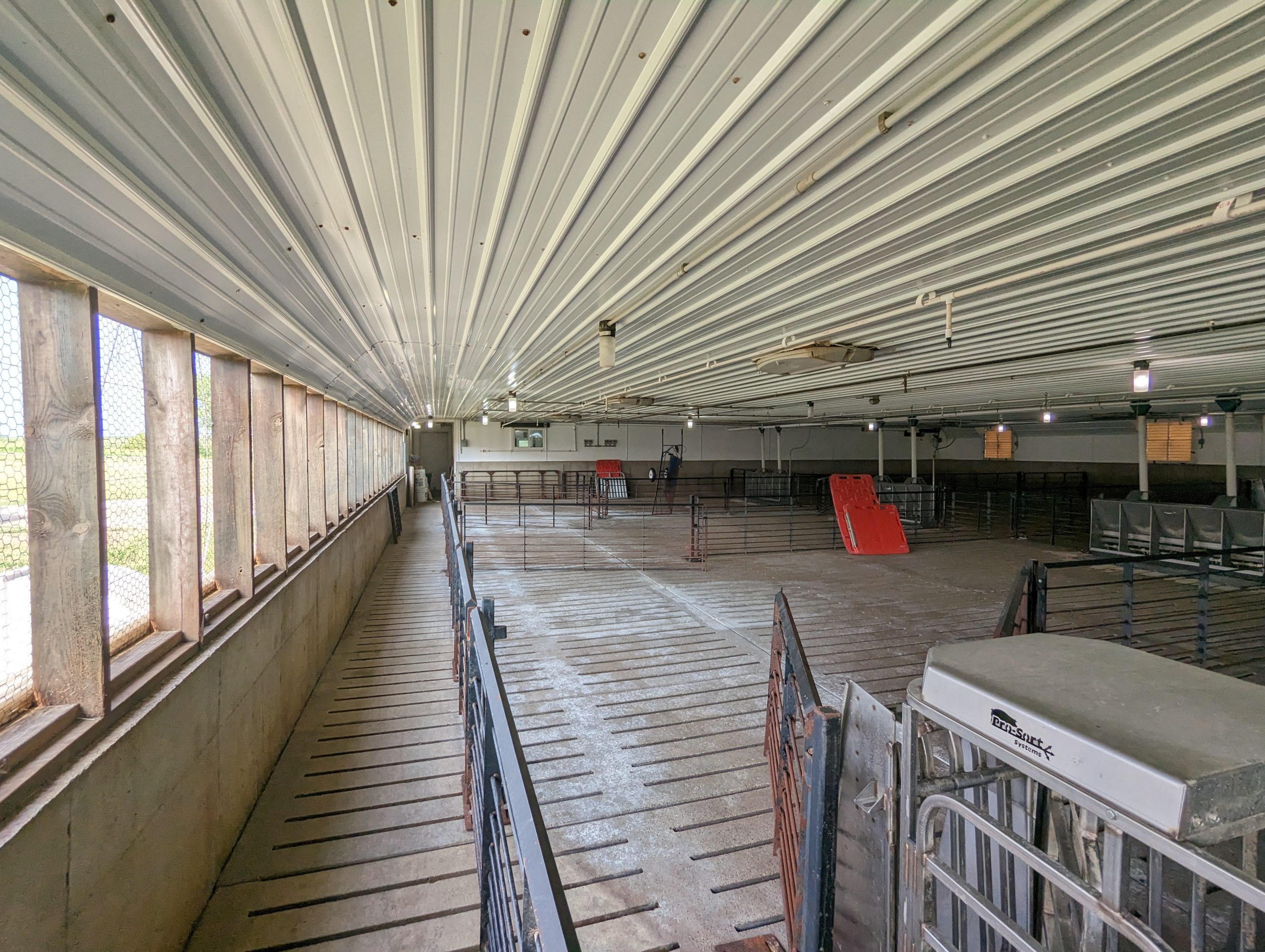 General Description Site 2: Consists of 3 barns all 51’x 172’, two were built in 2006 and one built in 2008 on 4.889 acres. The site includes a 12’x 20’ storage shed and is serviced by a 400 ft well with recent pump work completed and rural water. Each barn has 10 pens, 110 head per pen, 1,100 head capacity. Two of the three of barns have a computerized sort system and have new Choretime feedline systems installed in the last 2 years. All of the barns are tunnel ventilated, Thorp tube feeders, hog slats, brooder lines, 350,000-gal manure pits under each barn, new curtains in 2022. The site also has dock height loadouts, Generac 45KW backup generator, 15-ton Choretime bulk bins, (2) 1000 gallon propane tank (1 owned, 1 rented), (1) 500 gallon propane tank (rented). The west barn recently had $12,000 of epoxy work completed around the feeders. Taxes: $8,074.52/yr. Real estate taxes to be prorated the date of closing.