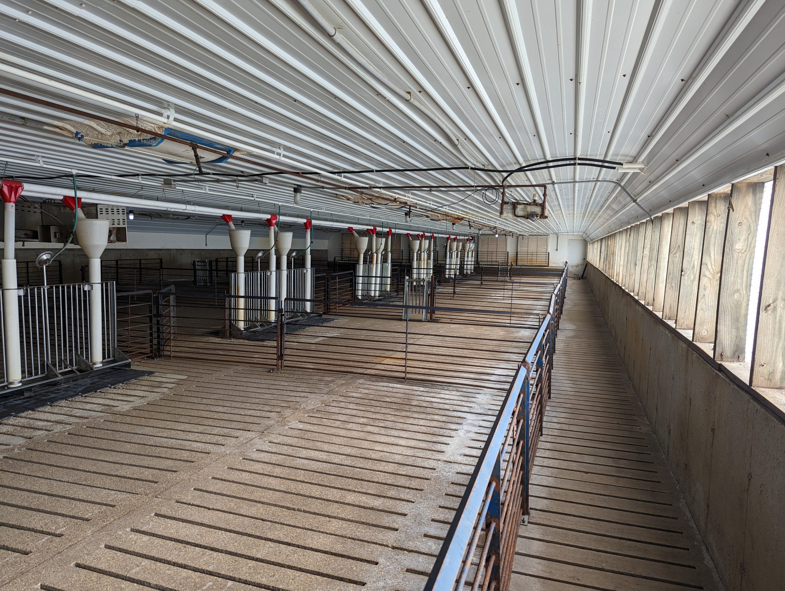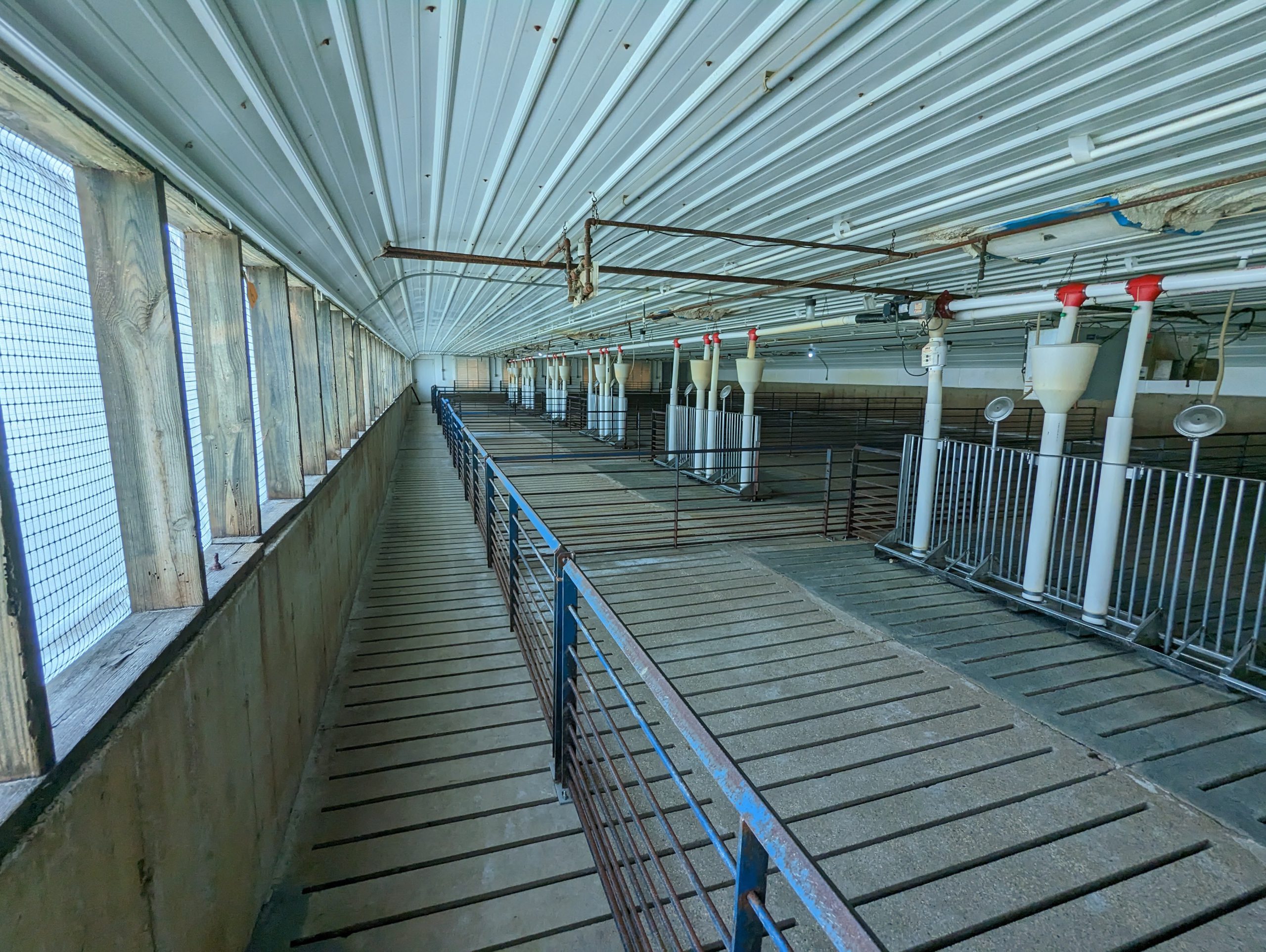 General Description Site 1: Consists of two barns 60’ x 160’ on 4.41 acres, one built in 2013 with a new Choretime feedline installed in 2020 and the other barn built in 2015 with new a Choretime feedline installed in 2021. Each barn has 10 pens, 120 head per pen, 1,200 head capacity. The site is serviced by a 130 ft well. Each barn contains a computerized sort system, hog slats, brooder lines, cross ventilated wet/dry feeders, and 400,000-gal manure pits under each barn. The site also has dock height loadouts, Kohler 35KW backup generator, 15-ton Valco bulk bins, (2)-1000 gallon propane tank, (1)-500 gallon propane tank, tanks are rented. Taxes: $5,433.06/yr. Real estate taxes to be prorated the date of closing.