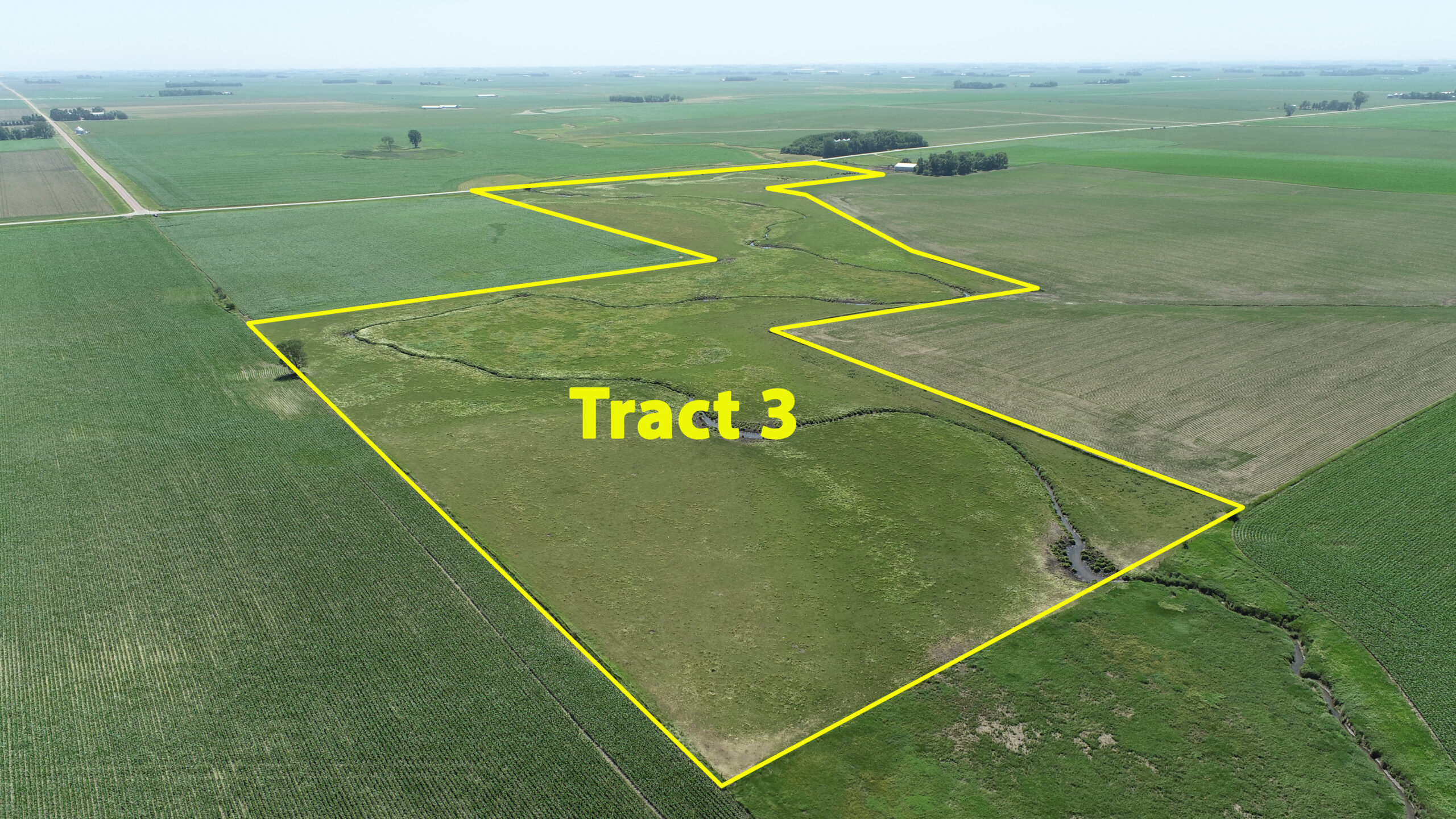General description Of Tract 3: According to the recent survey, this property contains 55.92+/- gross acres. This pastureland is fenced and has a source of water from the creek which flows through the property. The predominant soil types include: P733-Calco, 310B, B2-Galva, 77C2-Sac, 5040-Orthents. Pastureland is not always readily available! If you are a cow calf operator looking for additional acres of pastureland this is an excellent opportunity to purchase a good tract of pastureland! The buyer of this pastureland will be required to install a field driveway for access at the buyers sole expense. The field driveway has been approved by the county. Any new fencing needed on the South boundary line of the property between the acreage site and the pastureland will be the sole responsibility of the buyer of the pastureland.