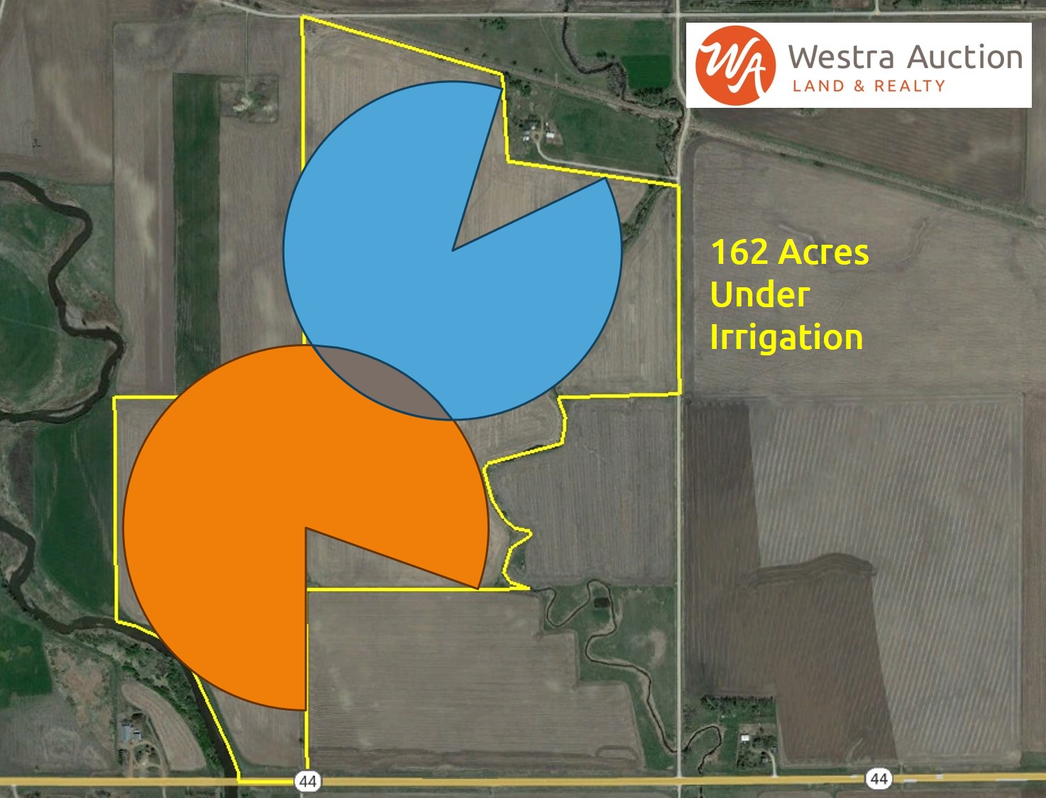 Auctioneer’s Note:  Don’t miss this opportunity to expand your current farming operation or to purchase the land as an investment.  This offering includes irrigated (2 pivots) and non-irrigated land and is under lease for the 2024 crop year.  Located just 3.5 miles west of Chancellor, SD on Hwy 44, the land is close in proximity to grain elevators and ethanol plants.  The land includes tile, 3 building eligibilities and has been in a corn/soybean rotation.  According to Surety AgriData, the land has a productivity index of 79.1 and a soil rating of .833.  Predominant soils include Egan-Wentworth complex, 2-6 percent slopes; Egan-Tent silty clay loams, 0-2 percent; Clamo silty clay; Egan-Ethan complex, 2-6 percent slopes.  The FSA estimates there is approximately 229.54 of cropland with a 112.5-acre corn base/116-bushel PLC yield and a 113-acre soybean base/31-bushel PLC yield.  Contact an auctioneer for APH information.  The seller will credit the buyer $76,263.50 per the 2024 lease at closing.  Taxes: $5,452.96.